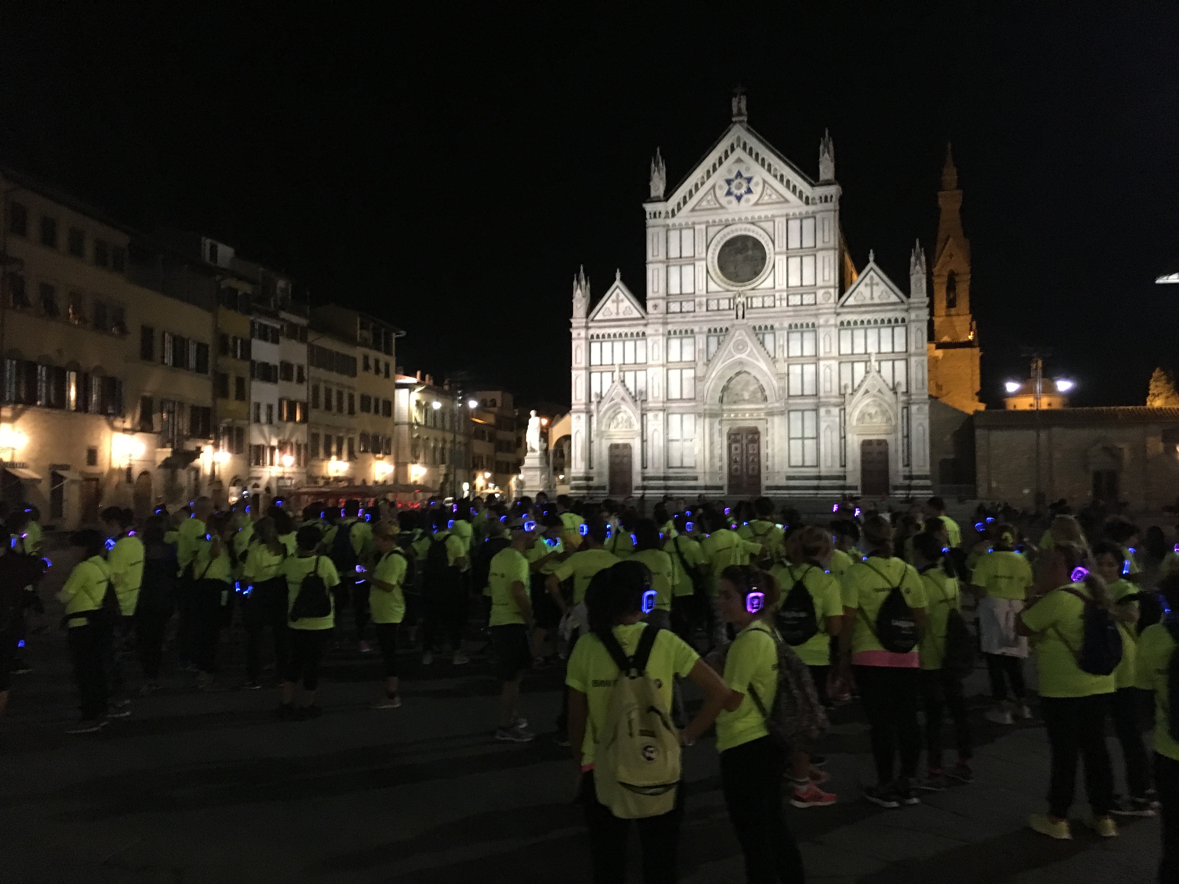 Sono state toccate le piazze tra le più significative della città, con partenza da Piazzale Michelangelo e arrivo in Piazza Santa Croce. Ad ogni “tappa”, un esercizio diverso.